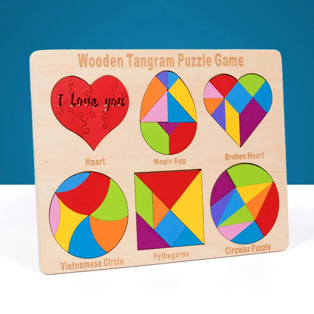 Buy New Colorful Wooden Tangram Jigsaw Puzzle Children's Early Education Puzzle Brain Development Toys Baby Kids Boy Girl Dropship and You will Save USD 0 or %, Because You Just Pay for not Full Price for