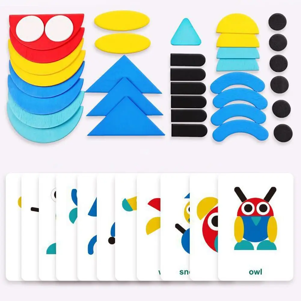 Wooden Animal Tangram Puzzles English Card Shape Recognition Early Education Intelligence Development Toys Puzzles For Baby Gift