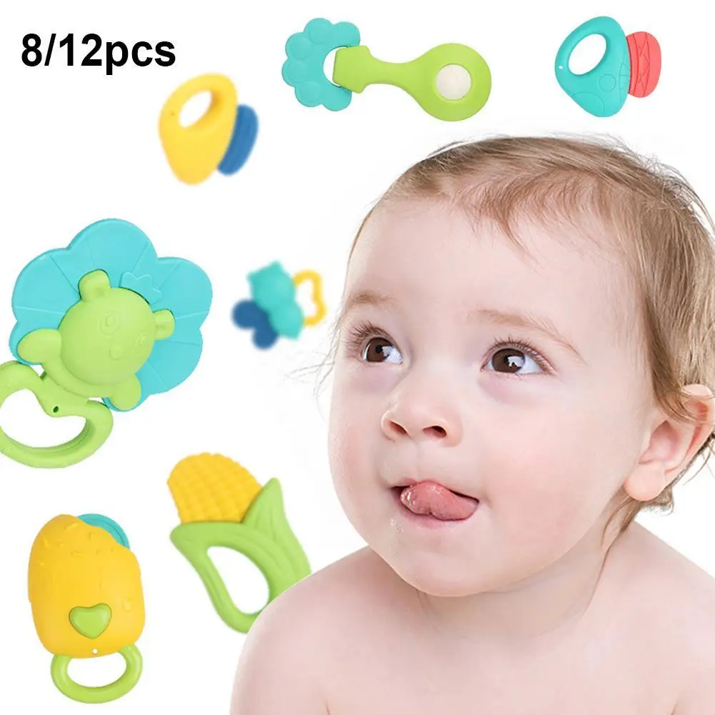 8/12Pcs Candy Color Animal Fruit Baby Hand Grip Rattle Newborns Baby Teether Development Toy