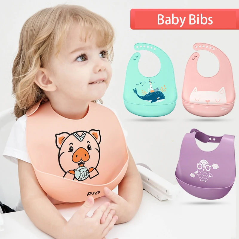 Baby Bibs Waterproof Silicone Feeding Baby Saliva Towel Newborn Cartoon Aprons Baby Bibs Adjustable Different Styles of Bibs